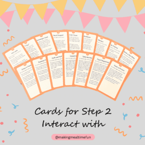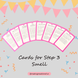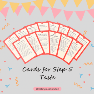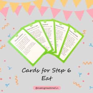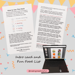 Hi! My name is Megan Cornell and I am a pediatric occupational therapist, picky eating specialist, and author of the Fun with Food card deck. This feeding resource features 100 cards with different games and activities to help your child learn about new foods in a play based and evidence based approach. Check out the Fun with Food card deck on Amazon and follow me on social media for all things OT and picky eating!
